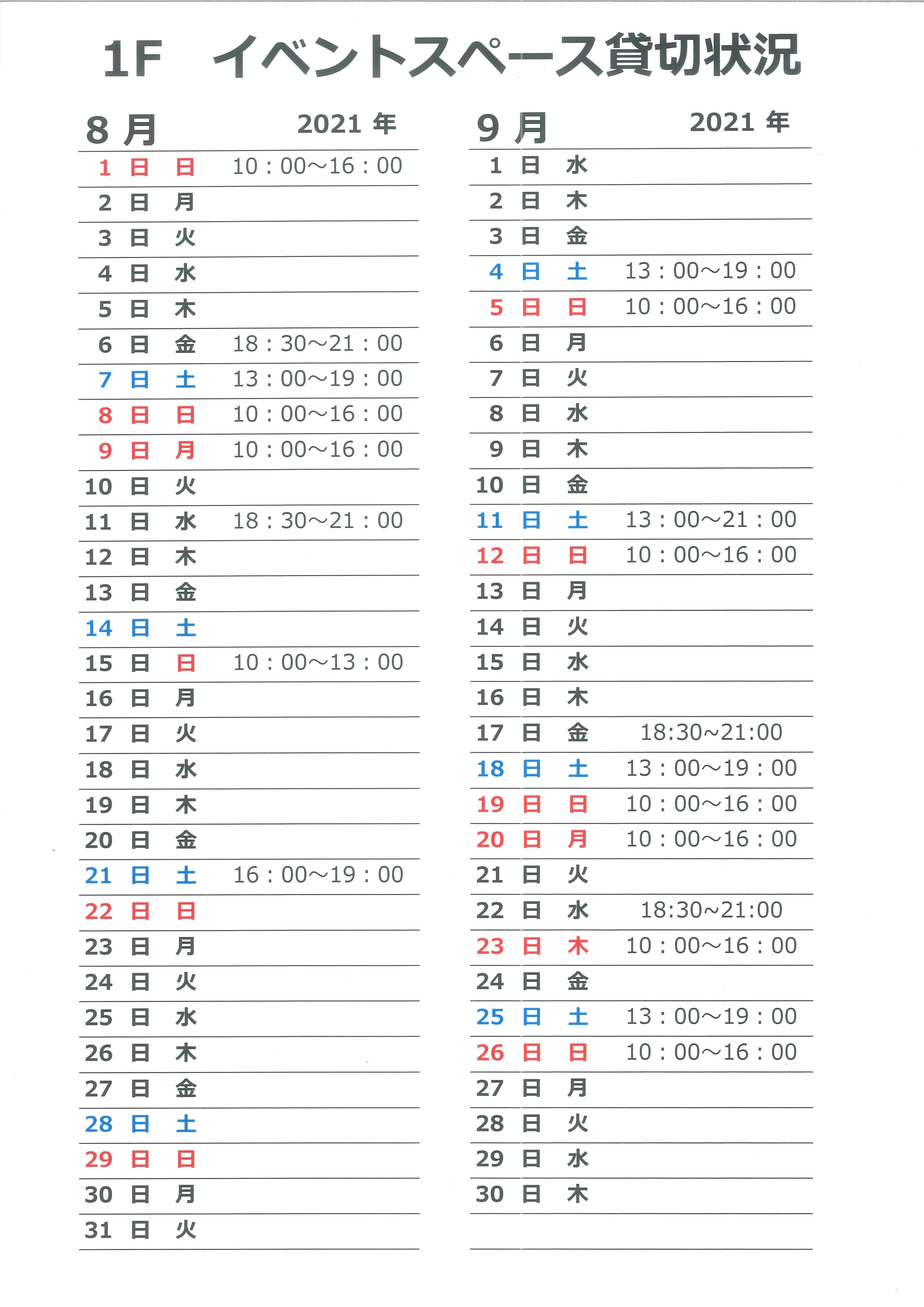 【1F コワーキングスペース貸切状況】 投稿日: 2021年8月22日2021年8月22日 投稿者: link-staff 【1F コワーキングスペース 貸切状況】 いつもお世話になっております。 ビジネスコミュニティーLINKでございます。 8~9月のLINK1Fスペースの貸切状況に変更がありました。ご参照くださいませ。 (8/22現在) 1Fスペースが貸切となりますが、コワーキングとしてご利用のお客様には別のお部屋のご用意をしております。 ご利用予定のお客様にはご迷惑をお掛け致しますが、予めご了承のほどお願い致します。