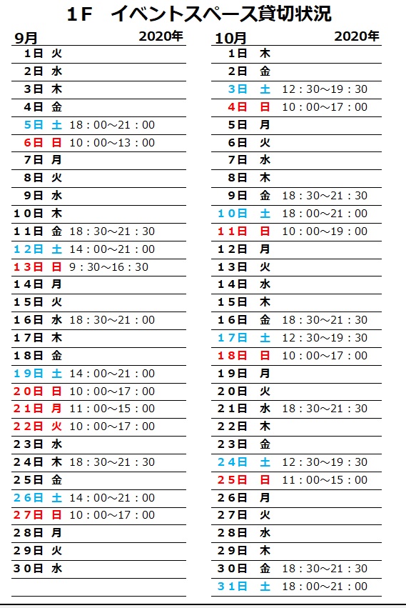 下記の時間帯は1Fのコワーキングスペースのご利用ができません。