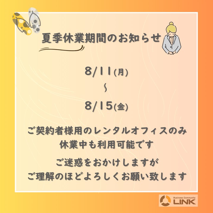 📣夏季休業期間のお知らせ