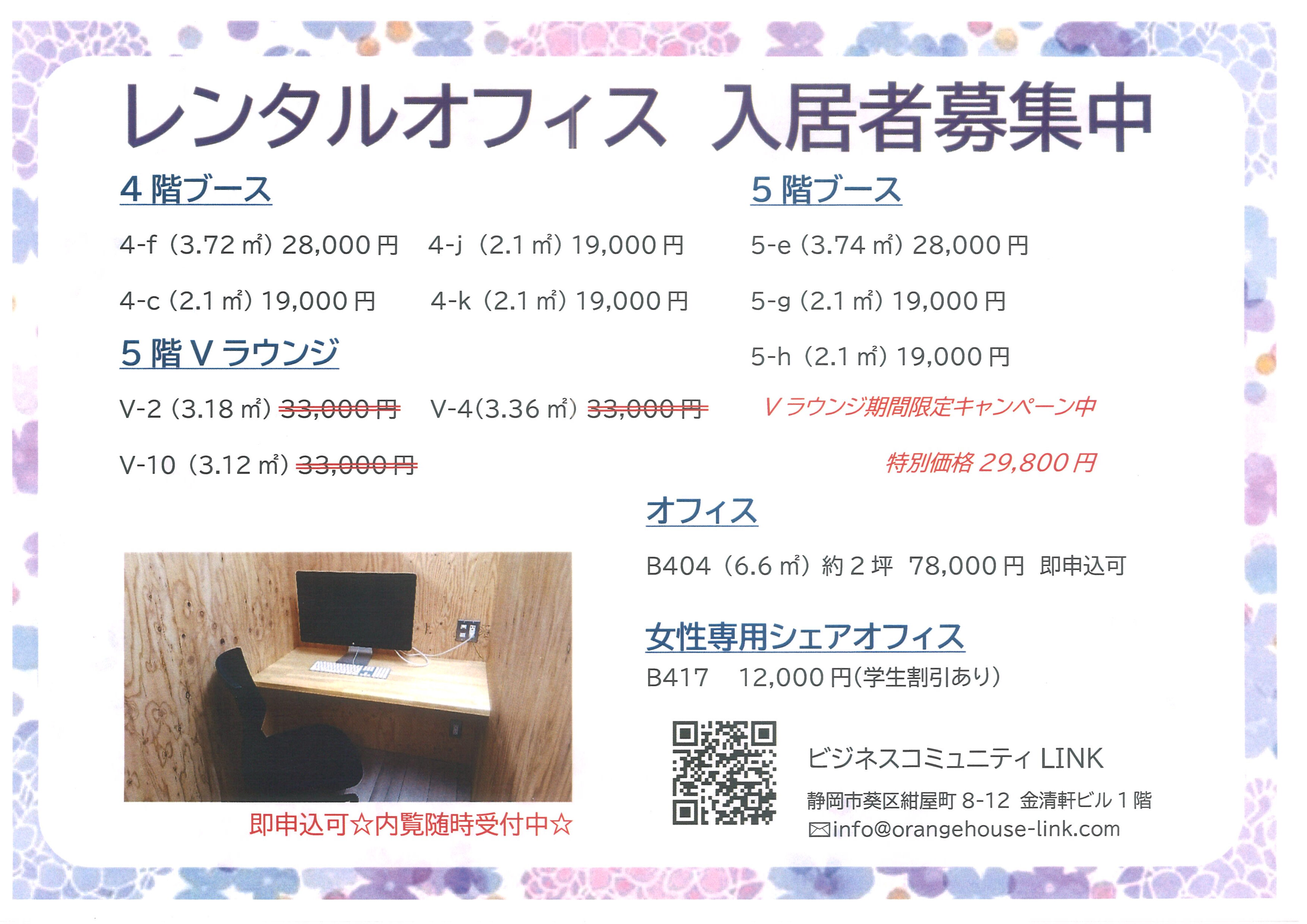 オフィスをお探しの方はLINK受付までご連絡ください。