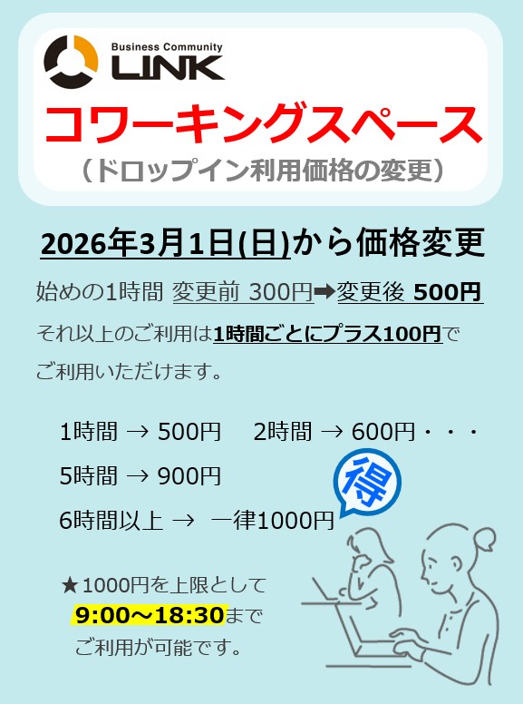 カテゴリー: コワーキングスペースタグ: LINK, コワーキングスペース, ドロップイン, ビジネスコミュニティLINK, 静岡駅前会議室LINK