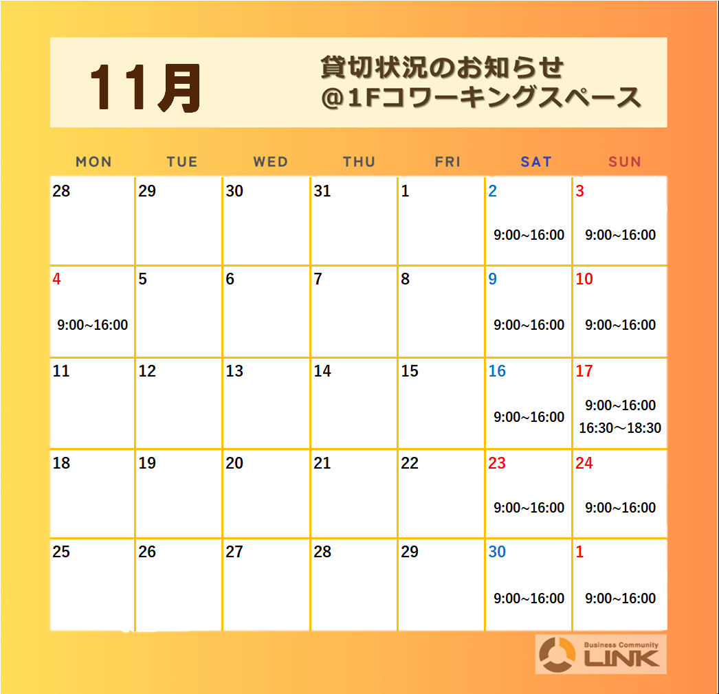 【1Fコワーキングスペース貸切状況のお知らせ📣】