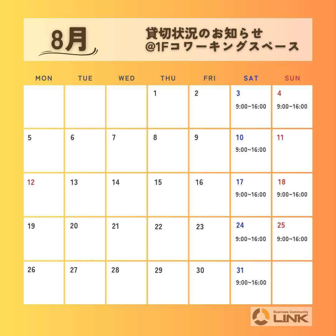 【1Fコワーキングスペース貸切状況のお知らせ📣