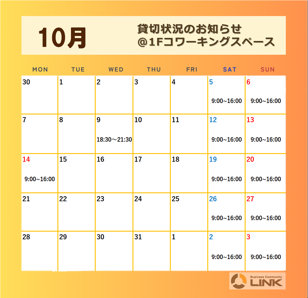 【1Fコワーキングスペース貸切状況のお知らせ📣】